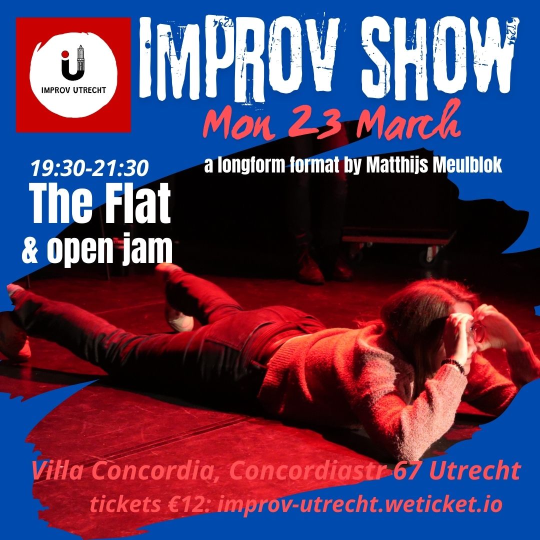 What happens behind closed doors? In The Flat, a long-form non-scripted show, inspired by Rear Window (Hitchkock), you’ll explore the hidden lives of your neighbours. Step into a shared apartment building, with intriguing characters, intertwining storylines. Are there romances? Underworld dealings? Or perhaps just a lonely man living with his cat? Director of this format and teacher is Matthijs Meulblok. After the show there is an open jam: the audience can join in playing games, put your name in the hat!